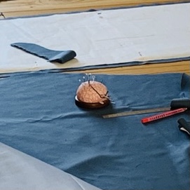 一つ前のおじさんのレクチャーがクソつまんなかったこと。早くバッグを塗って生地屋のマダムに見せたいこと。