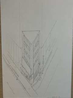 その話の上で修士制作のことを考えると、ある期間の個別の社会と建築の関係の話をするより、ホモサピエンスが開発してきた、世界の捉え方(現象論的な透視図法、超越論的な地図・軸測図法)の線上に位置付けられるような話をしたい。もっと先に生きる人たちにバトンパスできるような。